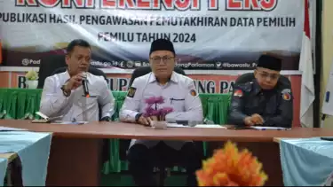 Padang Pariaman, tvOnenews.com – Bawaslu Kabupaten Padang Pariaman lakukan konferensi pers hasil pengawasan pemuktahiran data pemilih untuk pemilu 2024 dikantor Bawaslu Padang Pariaman Kamis Siang.