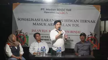 Deli Serdang, tvOnenews.com – Guna mengantisipasi masuknya hewan ternak ke area jalan tol, PT Medan Binjai Tol melakukan sosialisasi aturan dan resiko masuknya ternak di jalan tol Ruas Medan-Binjai.