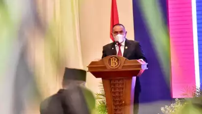 Medan, Sumatera Utara - Gubernur Sumatera Utara Edy Rahmayadi berharap pertumbuhan ekonomi daerah ini menyentuh angka 4,2 persen pada April mendatang. Hal tersebut disampaikan Gubernur Edy Rahmayadi pada upacara Pengukuhan Kepala Perwakilan Bank Indonesia (BI) Sumut Doddy Zulverdi di Kantor Perwakilan BI Sumut Jalan Balaikota, Medan, Jumat (18/3/2022).