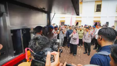 tvOnenews.com - Kapolri Jenderal Listyo Sigit Prabowo bersama Ketua Komisi IV DPR Siri Hediati Hariyadi meninjau lokasi Hunian Sementara (Huntara) Asrama Haji Pinangsori untuk korban bencana di wilayah Tapanuli Tengah, Sumatera Utara.