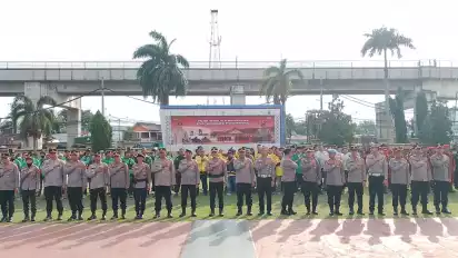 Palembang, tvOnenews.com - Polrestabes Palembang bersama berbagai elemen masyarakat dan organisasi kemasyarakatan (ormas) menggelar Apel Sabuk Kamtibmas di halaman Mapolrestabes Palembang.