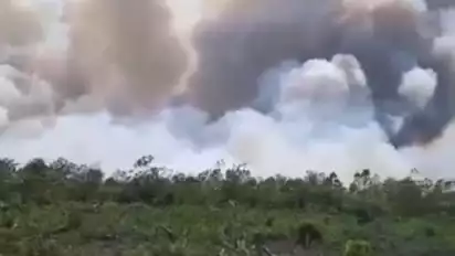 Rokan Hilir, tvOnenews.com - Kabut Asap yang keluar dari kebakaran hutan dan lahan menutupi jalur lintas Riau-Sumatera Utara (Sumut) yang berada di Desa Rantau Bais, Kecamatan Tanah Putih, Kabupaten Rokan Hilir (Rohil) Riau, Sabtu (14/3/2026).