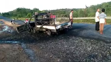 Bungo, Jambi - Satu unit kendaraan Carry pick up ludes terbakar di jalan Lintas Sumatera KM 53, Dusun Sirih Sekapur, Kecamatan Jujuhan, Bungo, Jambi. Diduga mobil tersebut terbakar karena sedang membawa bahan bakar minyak.