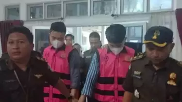 Ketiga tersangka dijerat dengan Pasal 2 ayat 1 dan Pasal 3 Jo Pasal 18 Undang-Undang No 31 Tahun 1999 perubahan Undang-Undang No 20 Tahun 2001 Jo Pasal 55 ayat 1 ke satu KUHP dengan ancaman kurungan di atas 15 tahun penjara.