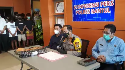 " Ketika bertemu di lokasi yang disepakati sebagai tempat tawuran kelompok yang kalah banyak jumlah anggotanya berusaha kabur dan menabrak salah satu anggota kelompok lain dan terjatuh. Sehingga salah satu korban bernama FT 18 tahun sempat dianiaya oleh kelompok pelaku yang jumlahnya 20 orang tersebut," terang AKBP Ihsan yang didampingi Kepala Dinas Pendidikan, Pemuda dan Olahraga Kabupaten Bantul Isdarmoko.