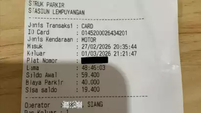 Berdasarkan foto struk yang diunggah, pemilik akun X @0xnotsteven menitipkan kendaraan jenis sepeda motor dengan tanggal masuk pada 27 Februari 2026 pukul 20:35:44.