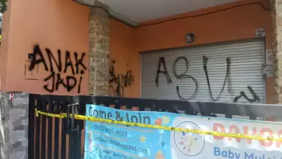 Berdasarkan pemantauan di lokasi, oknum tak bertanggung jawab tersebut diduga mencorat-coret dinding bagian depan daycare menggunakan cat warna hitam bertuliskan salah satunya 'tidak ada rasa kemanusiaan'. Sementara, bagian lantainya diduga dilempari cat warna hitam.