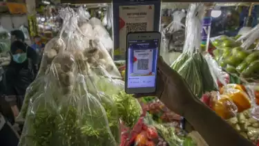 Ilustrasi warga memindai kode batang untuk pembayaran non tunai di salah satu los sembako di Pasar Mayestik, Kebayoran Baru, Jakarta, Selasa (11/5/2021).