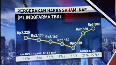 Dilansir dari RTI, saham INAF melesat 8,53% menjadi Rp2.800 per saham pada Selasa (22/6).