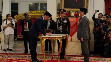Foto: Momen Tommy Djiwandono dilantik oleh Presiden Jokowi di Istana Negara, Jakarta.