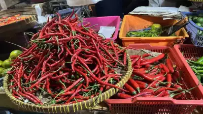 Selanjutnya, komoditas cabai merah keriting di harga Rp60.364 per kg naik tipis dari sebelumnya tercatat Rp52.689 per kg; lalu cabai merah besar di harga Rp55.625 per kg naik dari hari sebelumnya tercatat Rp46.955 per kg.