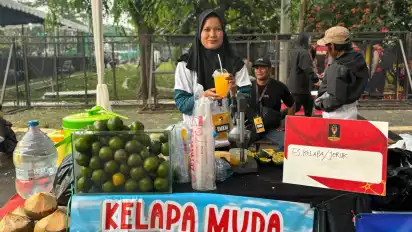 Salah satunya adalah Ibu Ayu (40), nasabah PNM Mekaar sejak 2022, yang menjajakan es jeruk dan es kelapa.