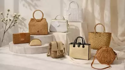 Dengan sentuhan desain modern yang tetap mempertahankan teknik anyaman tradisional, bahan alami tersebut diolah menjadi produk fesyen seperti tas, dompet, dan aksesori.
