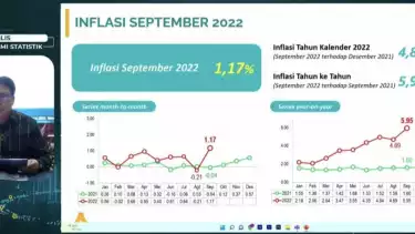 "Berdasarkan pantauan BPS di 90 kota pada September 2022 terjadi inflasi 1,17 persen," kata Kepala BPS Margo Yuwono dalam konferensi pers di Jakarta, Senin (3/10/2022).