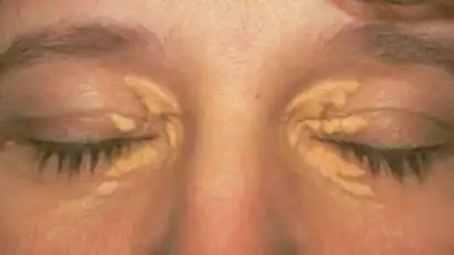 Xanthelasma diketahui biasanya muncul di sekitar mata atau hidung, mereka terbuat dari endapan kolesterol.