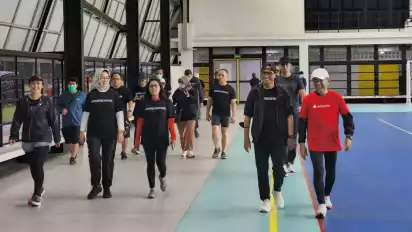 Dikarenakan gerimisnya masih terus turun maka kita memutuskan untuk tetap jalan pagi di dalam arena Sarana Olah Raga (SOR) UI yang cukup megah, bersih dan rapih pada Sabtu (16/7/2022). Dan lumayan Ibu Menlu bisa menempuh 7 kilometer, Pak Menhub, Ketua MWA UI, Pak Warek UI dan lain lain dapat tempuh sejauh 6 kilometer tanpa terasa.