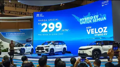tvOnenews.com - PT Toyota Astra Motor menambah line up mobil elektrifikasi dengan meluncurkan New Veloz Hybrid EV di pembukaan pameran Gaikindo Jakarta Auto Week (GJAW) 2025, di ICE BSD City, Tangerang, pada Jumat (21/11/2025).