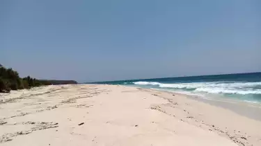 Dari jalur hutan, tim CCR mengambil jalur bibir pantai. Laut biru, buih ombak putih, pasir putih, dan batu karang hitam pekat menjadi pemandangan dominan sepanjang trek.