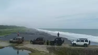 Kabupaten Sukabumi, Jawa Barat - Beragam pantai dengan pasir bermacam warna, menghiasi pesisir Kabupaten Sukabumi. Pantai-pantai itu, salah satunya Pantai Selatan Sukabumi, sangat indah. Apalagi kalau dilihat sambil offroad kendaraan penggerak roda empat (4WD).