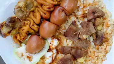 Menu lainnya seperti jeroan seperti usus juga menjadi makanan yang wajib dicoba juga saat Anda berada di kedai Ayam Penyet Cabe Ijo Aa Sipit.