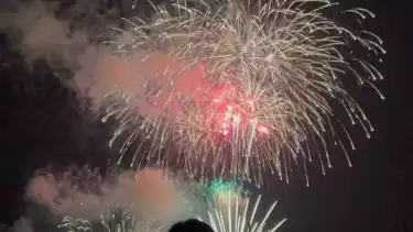 Sontak pengunjung pun ikut bersorak saat cahaya kembang api meluncur, meledak di udara dan menghiasi langit di musim panas yang cerah.