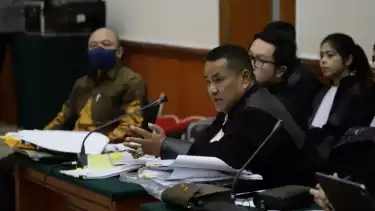 Hotman Paris saat mendampingi Irjen Teddy Minahasa dalam sidang kasus peredaran narkoba di Pengadilan Negeri (PN) Jakarta Barat.