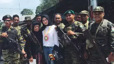 Ulta Levenia Nababan saat melakukan kunjungan ke Filipina dan disambut hangat tentara dari kelompok pemberontak Moro Islamic Liberation Front (MILF) di Mindanao.