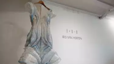 Gaun berkelanjutan, bernama "Mimesis," dirancang dengan kain yang terbuat dari botol Evian daur ulang dan sutra organik dan memberikan tampilan tiga dimensi serupa dengan air mengalir.