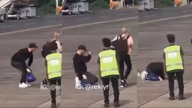 Tiba-tiba ia berhenti dan menyempatkan untuk sujud dan mencium tanah sebelum akhirnya ia masuk ke dalam pesawat.
