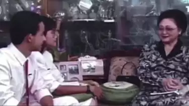 Anies Baswedan (depan) mewawancarai Ibu Tien Soeharto (kanan). (Tangkapan Layar YouTube)
