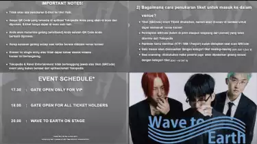 Berikut informasi penting dari promotor buat kalian yang akan menyaksikan konser Wave to Earth di Jakarta yang dilansir dari unggahan instagram @ravelentertainment.