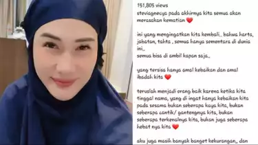 “Pada akhirnya kita semua akan merasakan kematian. Ini yang mengingatkan kita kembali… bahwa harta, jabatan, tahta, semua hanya sementara di dunia ini… semua bisa diambil kapan saja… yang tersisa hanya amal kebaikan dan amal ibadah kita,” tulis Stevie Agnecya pada unggahan Instagramnya, @steviagnecya.