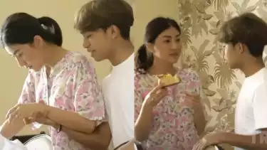 "Mau Bunda. Ayo sini bikin video, bikin video," ujar Betrand Peto. "Apaan sih orang lagi mau makan," tegas Sarwendah menolak, sambil menggigit roti yang ada di tangannya.Â