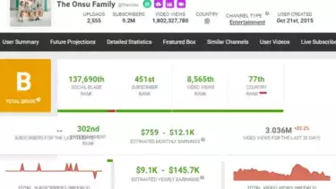 Penghasilan kanal YouTube The Onsu Family milik Ruben Onsu. Sumber: Social Blade.