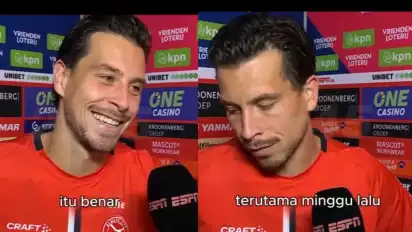 Saat diwawancarai awak media seputar hasil pertandingan klubnya, Almere City, dalam sebuah wawancara video Thom Haye dengan raut wajah kelelahan masih meladeni pertanyaang sang wartawan.