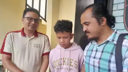 Farel Prayoga didampingi manajer dan kuasa hukum ayahnya di Mapolresta Banyuwangi, Kamis (12/06)
