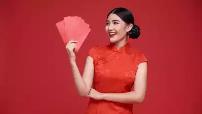 Ilustrasi Wanita Memegang Angpao. (Sumber: Freepik @our-team)