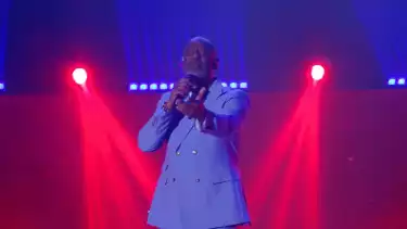 Begitu lampu meredup setelah penampilan Dira, beberapa menit kemudian Brian McKnight muncul di atas panggung mengenakan setelah berwarna biru muda.