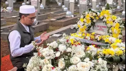 Setelah pemakaman, Ustaz Adi Hidayat menyempatkan diri untuk ziarah kubur dan mendoakan di makam Try Sutrisno.