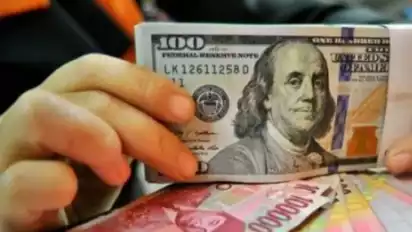 Ilustrasi - Lembaran mata uang rupiah dan dolar AS
