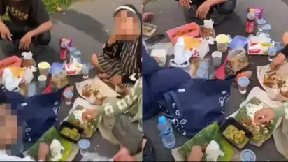 Aksi keluarga ini diunggah oleh akun TikTok @rejajoy_12, terlihat rombongan keluarga yang berjumlah 7 orang asyik menggelar makanannya dan duduk bersila di aspal bahu jalan tol.