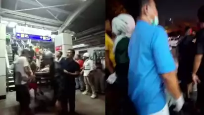 Penumpang yang berada di lokasi pun sontak panik, sementara petugas stasiun bersama warga sekitar langsung bergerak cepat melakukan penyelamatan.