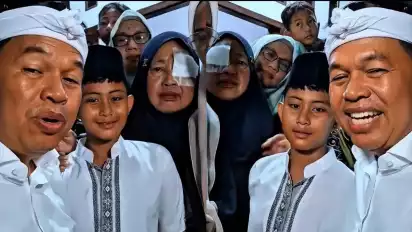 Dalam video yang diunggahnya, Dedi terlihat merangkul anak korban dan menyampaikan empati mendalam.