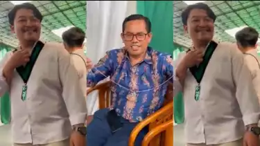 Dalam video tersebut, si pria berkemeja putih terlihat menghampiri pria berbaju batik. Si pengurus baru HMI tampak diminta untuk mengeluarkan kalung yang tersembunyi di balik bajunya.