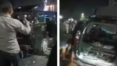Bahkan pada video tersebut terlihat seorang anggota polisi yang berada dilokasi tidak mampu mengendalikan sejumlah warga yang emosi hingga menghancurkan mobil tersebut.