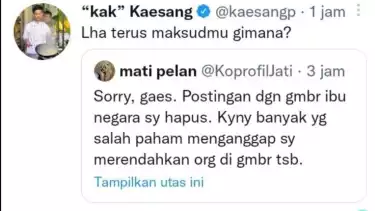 “Mas @kaesangp kamu boleh marah sebagai anak untuk membela martabat orang tuamu bukan sebagai anak presiden apalagi sebagai pejabat publik,” ungkap warganet.