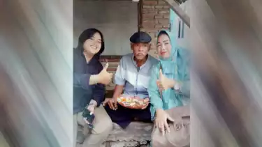 Dengan ciri khas menggunakan topi copet berwarna hitam, juragan tanah asal Cirebon itu tampak tengah memegang makanan.