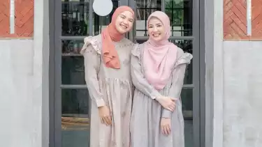 6. Natasha Rizky bersama Marsha Natika berpose dengan model gamis terbaru
