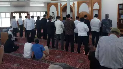 Wapres Ma'ruf Amin beserta rombongan yang tiba di masjid sekitar pukul 13.45 waktu setempat, langsung mengambil air wudu dan mengambil posisi shalat di deretan terdepan jamaah, tepatnya di belakang imam.