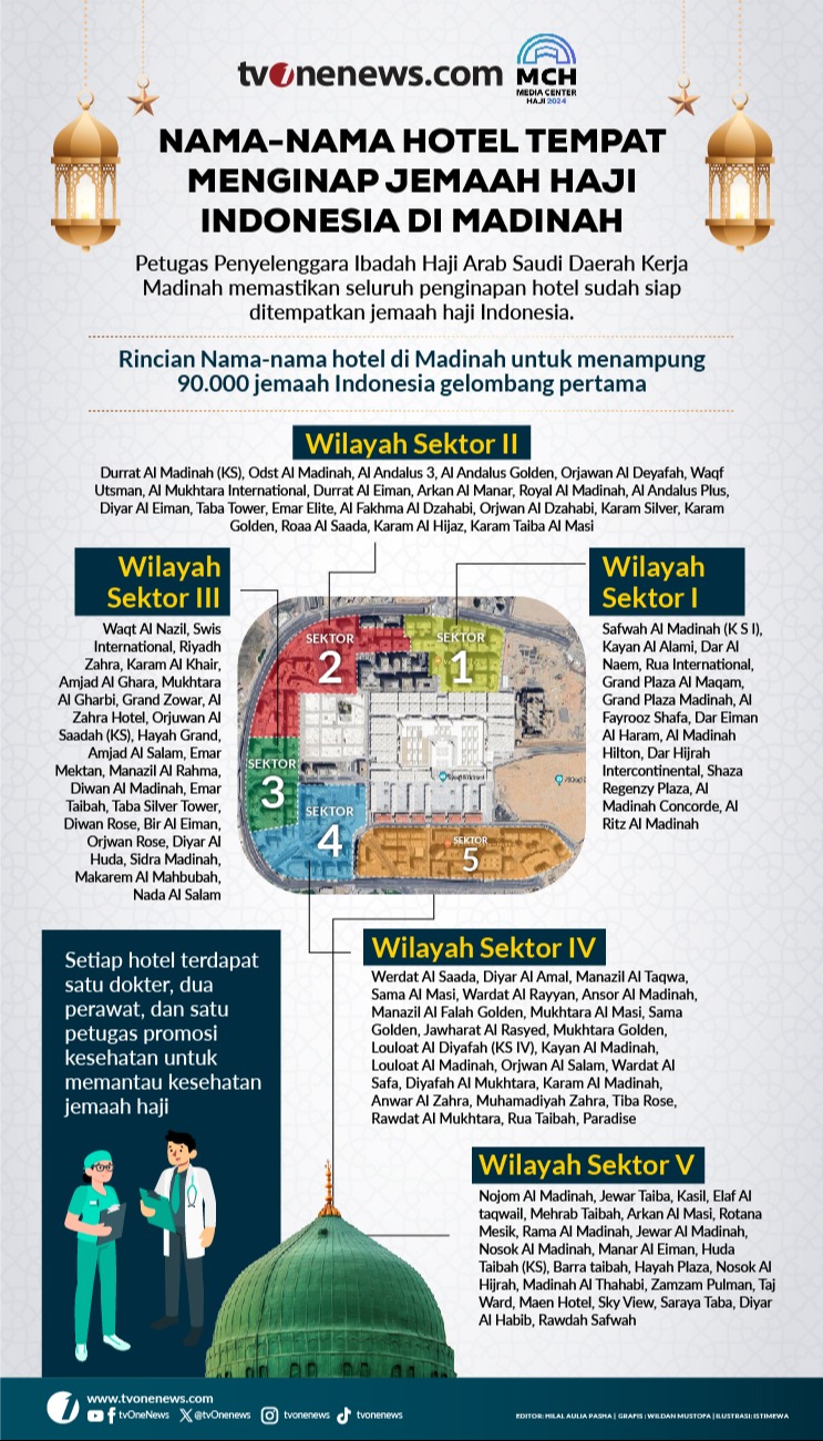 INFOGRAFIS: Nama-nama Hotel Tempat Menginap Jemaah Haji Indonesia di Madinah